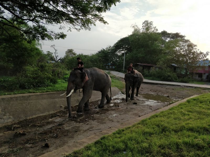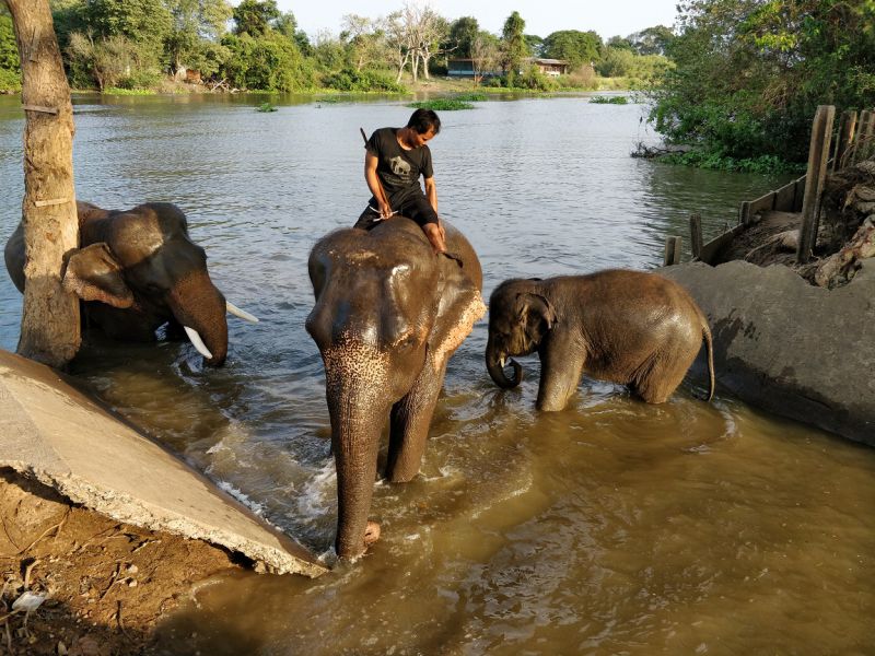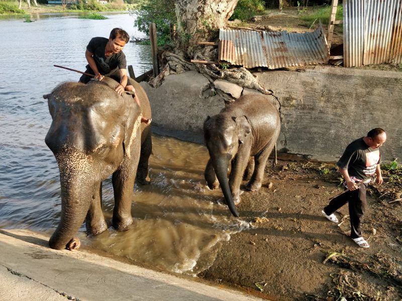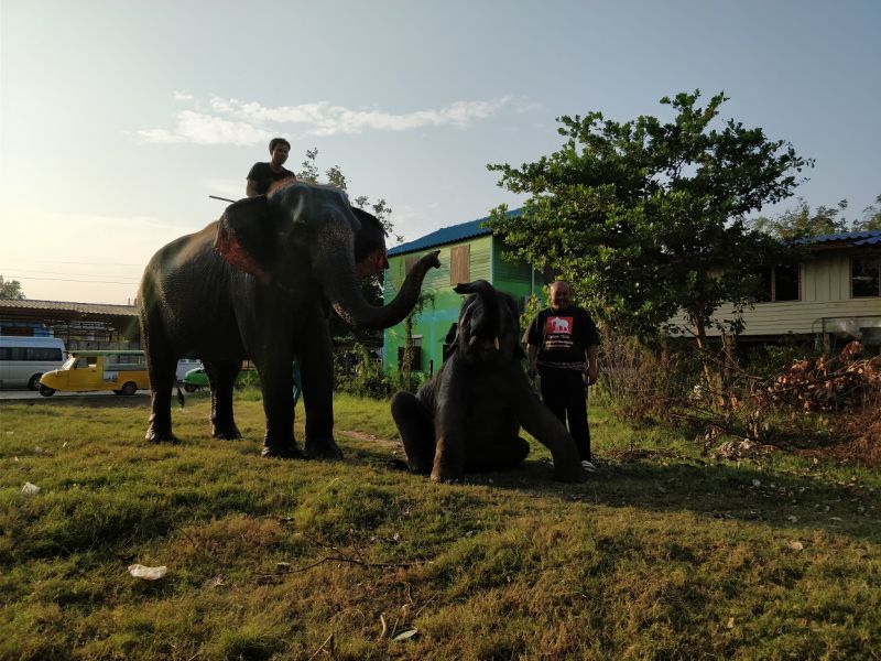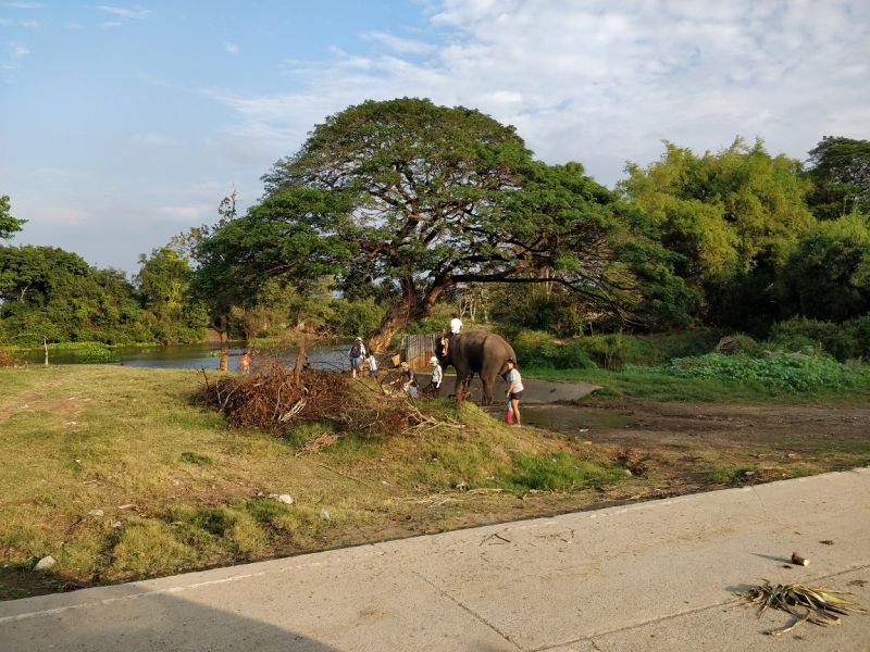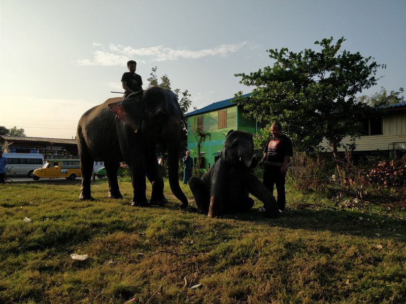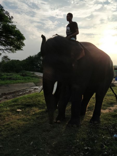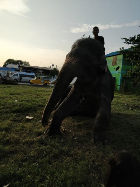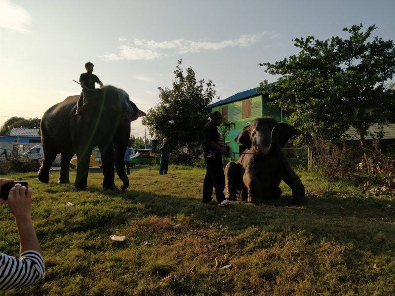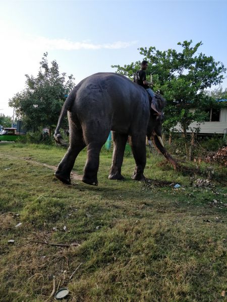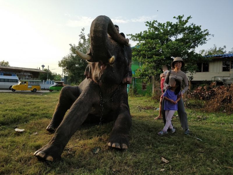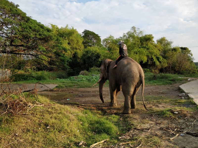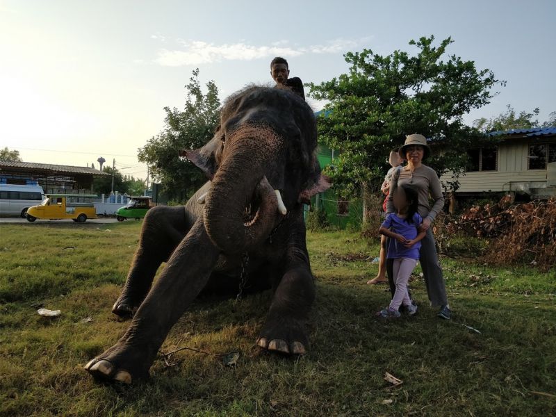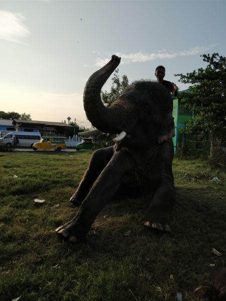 骑手示意,大象可以亲近亲近,抚摸、拍照都可以。