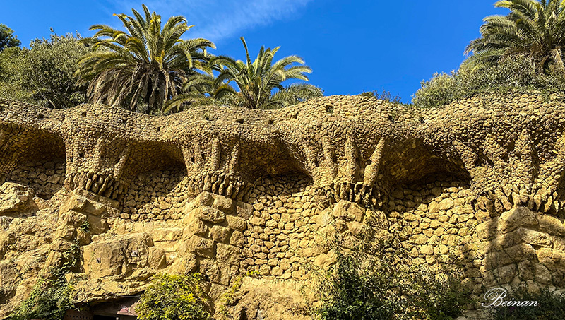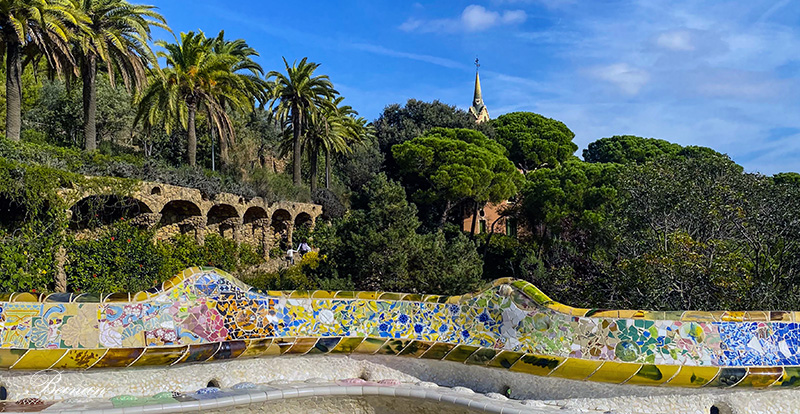 桂尔公园建在巴塞罗那的厄尔卡梅尔(El Carmel)山上。高迪在山上设计了一个大露台,由一圈蜿蜒曲折的长凳作为露台的围栏。长凳的靠背上是色彩缤纷的马赛克组成的图案。在这里可以俯瞰美丽的城市。