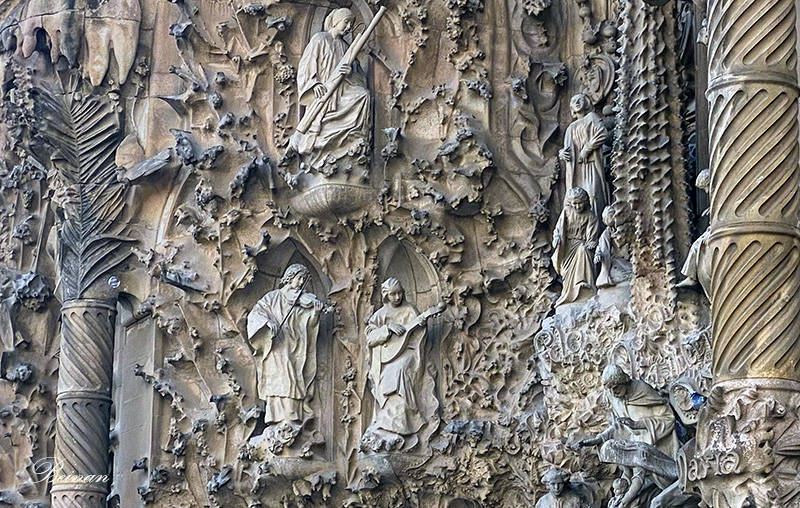 以大自然的岩壁、洞穴,花草、动物等等为灵感的设计,刻画出一座浮雕《圣经》。不禁感叹,高迪就是高迪,举世无双,无人可及。