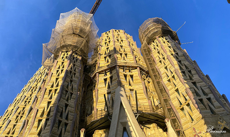尽管现在大教堂周围还是脚手架林立,预计在2026年高迪逝世100周年纪念时会全面完工。希望届时还有机会再睹尊容。