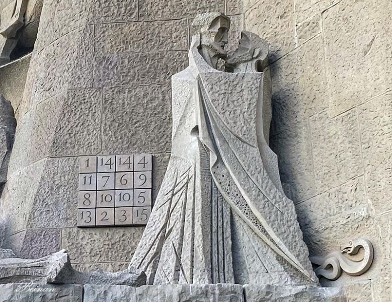 看到了这个犹大亲吻耶稣的雕塑。旁边是一个数字网格。