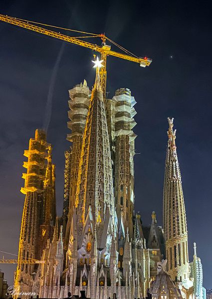 从1882年开始到现在,圣家堂的修建经历了140年。2021年12月8日晚间,大教堂顶端120米处的圣诞之星终于被点亮。给深处疫情中的世界带来了希望。