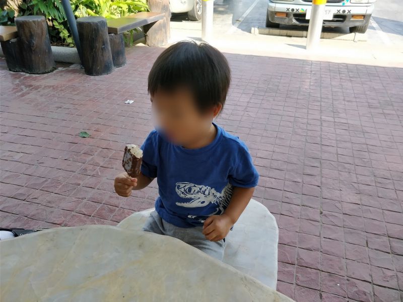 终于看到一间小冰店。孙女、孙子吃雪糕,我们要各式冰奶茶。奶茶价钱比曼谷便宜多了,但更甜。小阿立嫂说回曼谷再去喝好点的奶茶。我们勉强喝冰甜茶,消消暑。