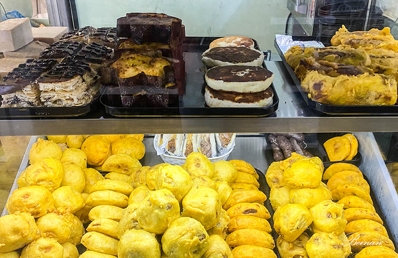 只好比比划划买了一个尝尝。嘿,还真好吃。里面是果脯,可能是不同形状的窝头包着不同的果脯吧。油炸的包皮,又酥又脆。里面的果脯块儿酸甜,又有嚼头,很可口。
