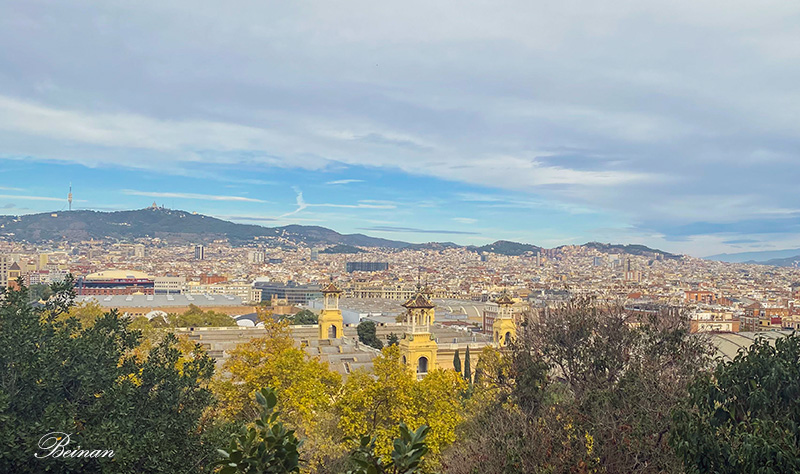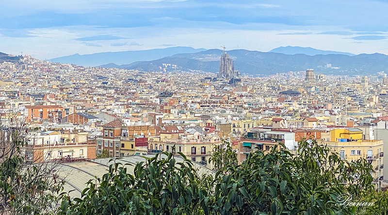 在山顶俯瞰巴塞罗那,一眼看见了远处鹤立鸡群的圣家族大教堂。