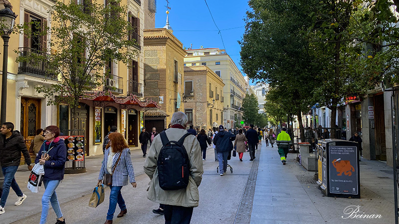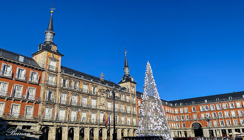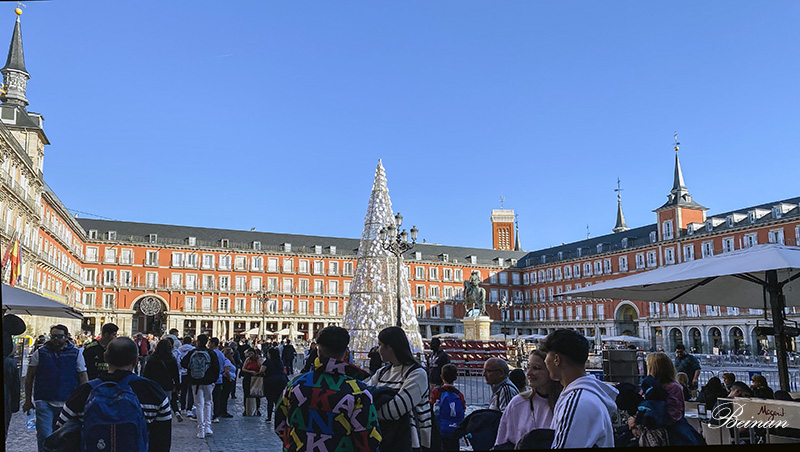 马约尔广场(Plaza Mayor)上挤满了人。刚入11月中旬,广场上已有了节日气氛,圣诞树已经立起来了。