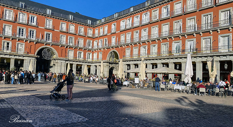 马约尔广场是马德里最著名的广场,也是这座城市的中心广场,马德里的心脏。是当地人和游客都喜爱的地方。