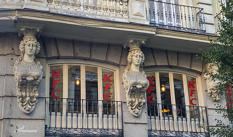 而肯德基用来招徕门面的是这些女神。也不知肯老爹和这些女神有什么渊源,炸鸡铺竟藏在这古色古香的建筑物中。