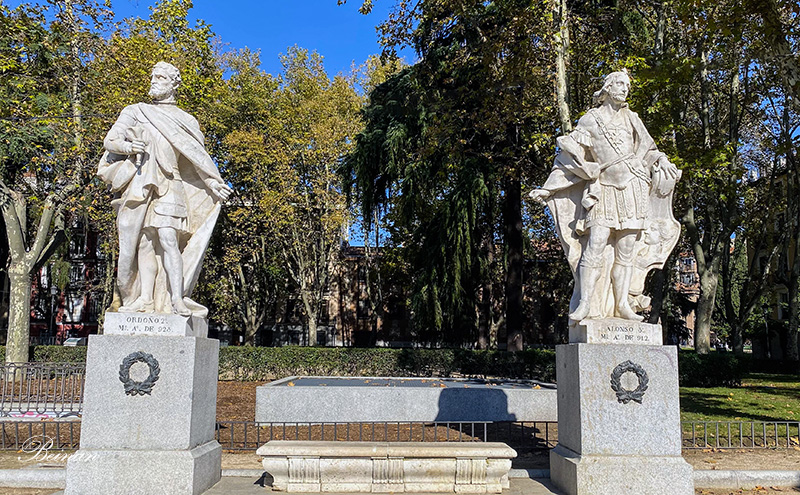 广场上有44位中世纪西班牙国王的雕像。这是其中的两位。