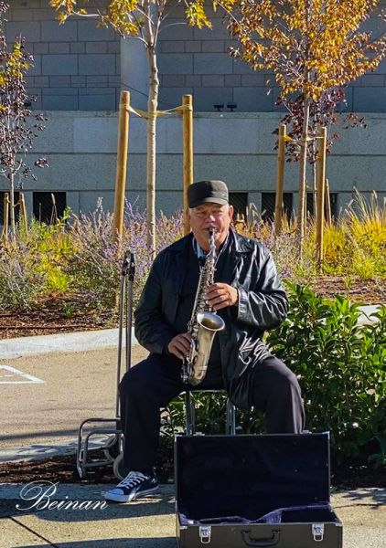 忽然听到熟悉的音乐声,是前南斯拉夫电影《桥》的插曲《啊,朋友再见》,令我感觉在巴尔干。原来,一个大爷在广场上吹萨克斯。看来这首意大利歌曲深为全世界人民喜爱啊。