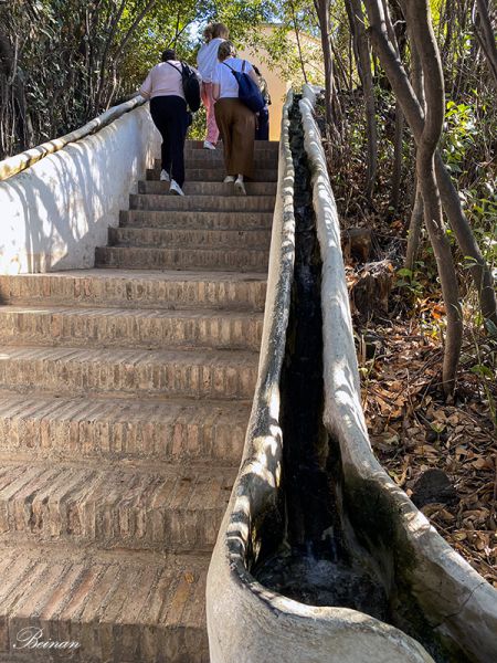 水楼梯是这些花园中最古老的楼梯,它在穆斯林时期就已经存在。楼梯的扶手是流水通道。显示阿拉伯人创造世界上最先进的水利网络的智慧。