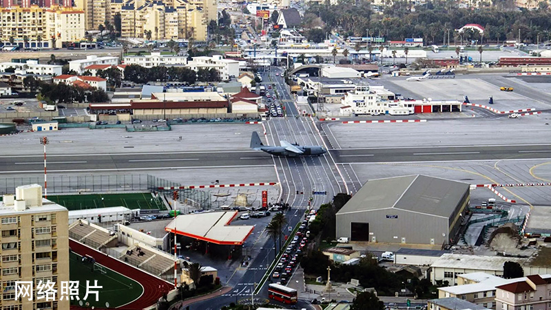 您可以看到,机场跑道和边境线是平行的。进入直布罗陀必须穿过机场跑道。