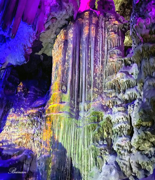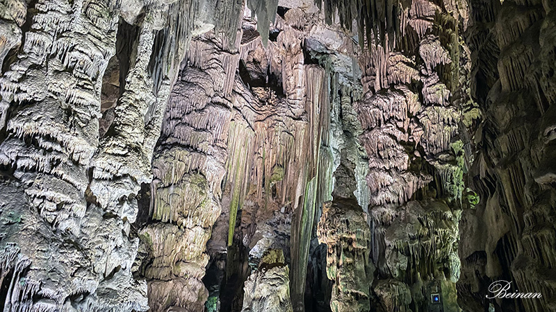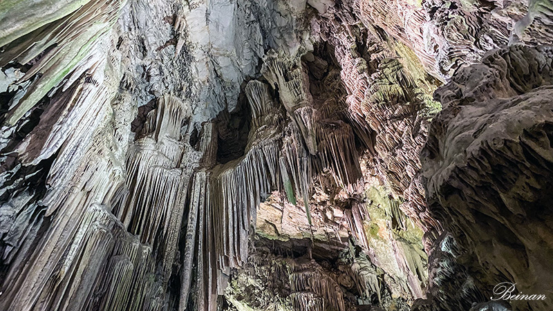 这个洞穴是由雨水慢慢渗入石灰岩形成的。地质断层中的微小裂缝在数千年的时间里发展成为长长的通道和巨大的洞穴。洞内众多的钟乳石和石笋,是地面上滴落的水滴沉积下来的溶岩痕迹堆积而成。