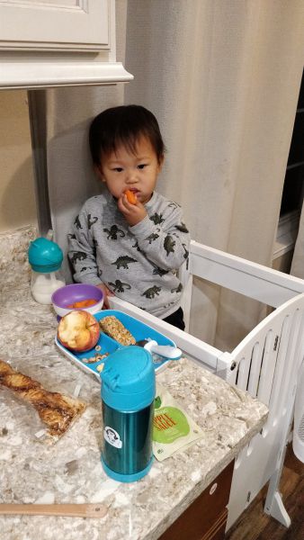 早餐随他爱吃啥,水果牛奶、snack bar都吃了些。面包不吃就算了。反正幼儿园有点心(午餐、点心小小阿立嫂行前已经准备好了)。