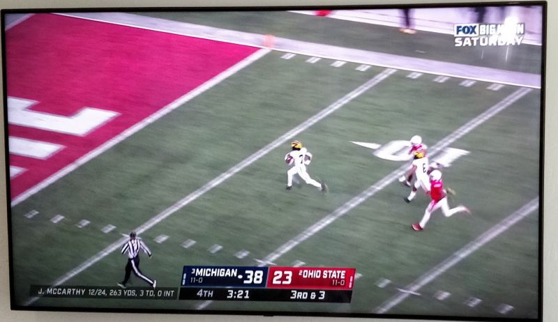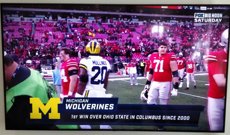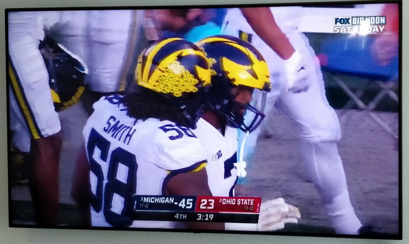 咱们蜜大今年全国排名第三,排名第二的是老牌劲敌,同一大学赛区《大十》(Big 10)又同在东区(East Division)的俄亥俄州立大学。赛前两队都是十一战全胜。胜者进入下周六的大十冠军赛(Big 10 Championship),对决西区的冠军。