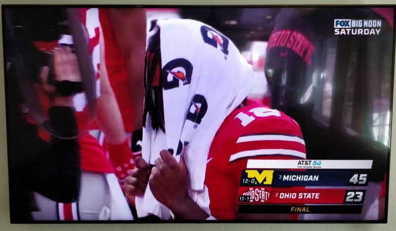俄亥俄州立再无还手之力。要不是裁判偏袒,蜜大防守又该直接得分,红军输得找不到北了。