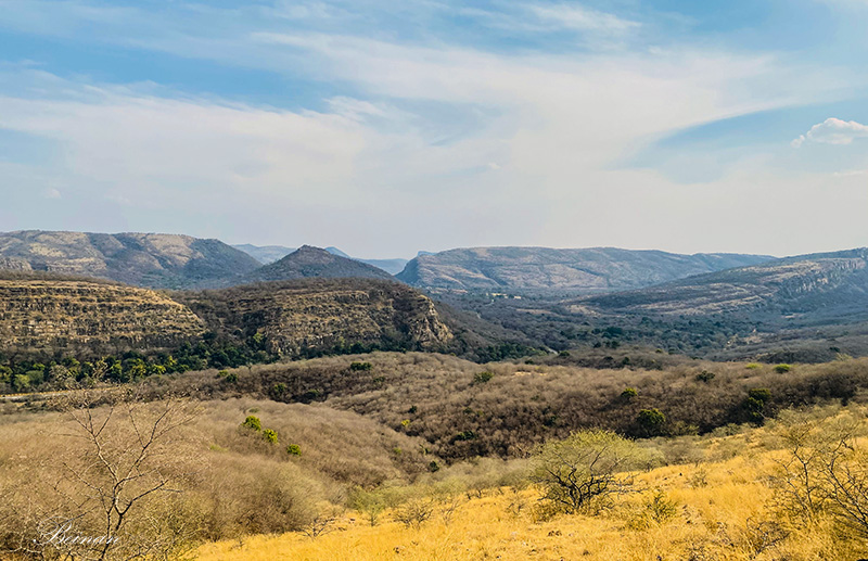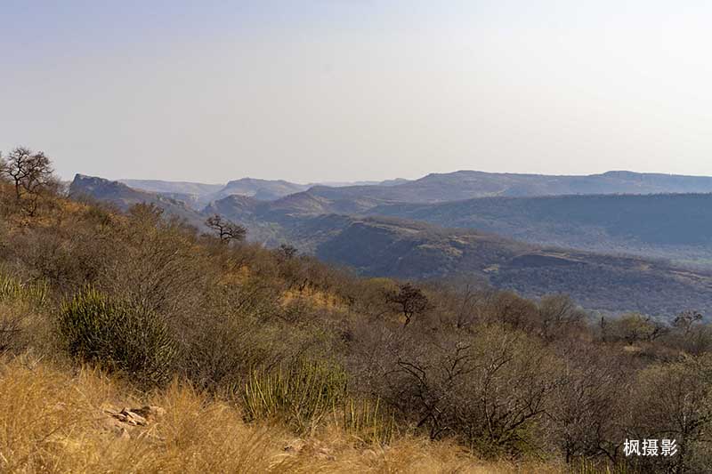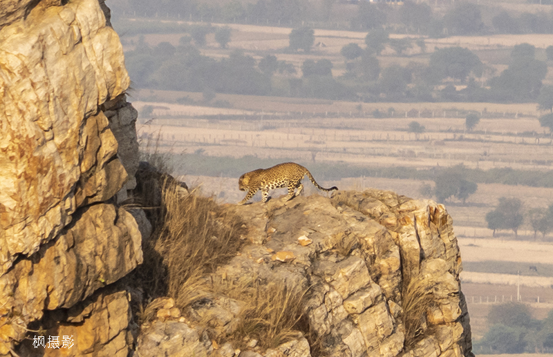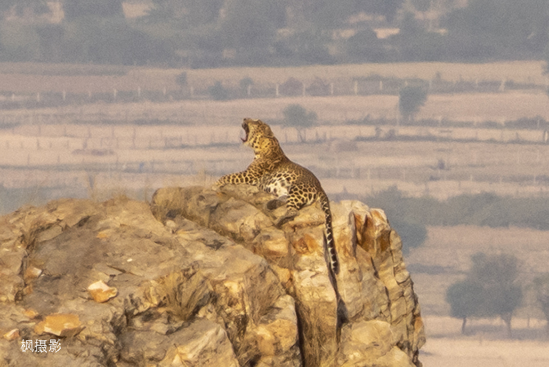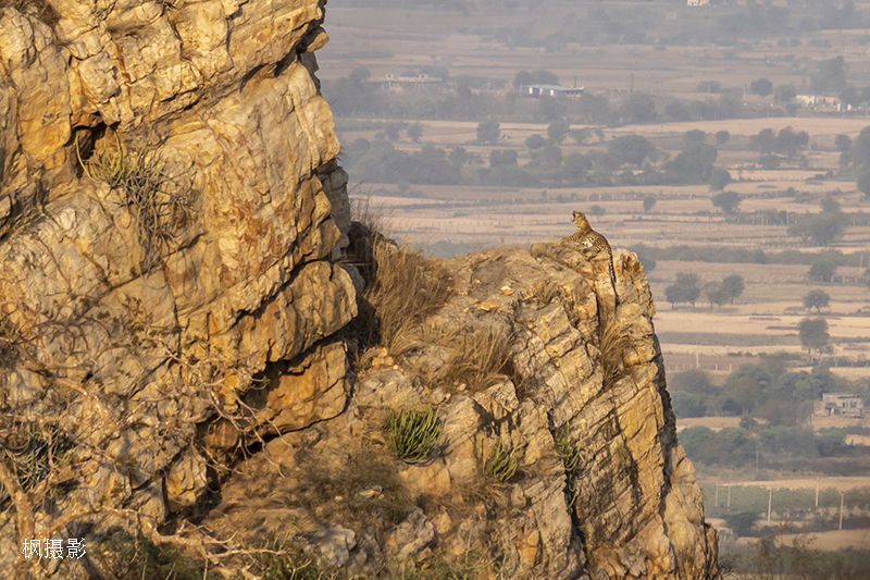 最令我们兴奋的是看到了孟加拉豹(学名:Panthera Pardus Fusca;英文:Indian leopard)或称印度豹。它悠闲地趴在远处的峭壁顶端。