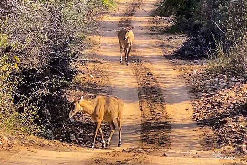 导游说,所有这些花鹿和我们看到的动物都是老虎的食物。来前也看到过这里的老虎捕食花鹿的照片。老虎甚至在游览车前面撕咬猎物,好像在人类面前炫耀自己的虎威。真为这些可爱的花鹿们担心。