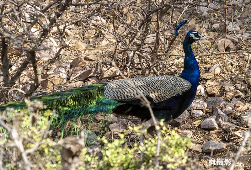 忽然,在枯叶林中看到了一只孔雀。F将军的相机抓住了它美丽的身影。