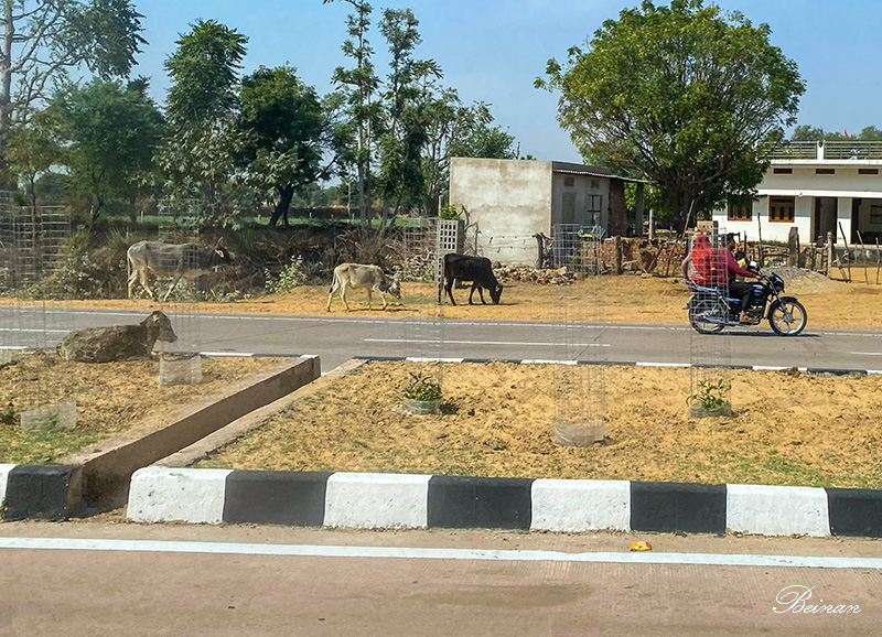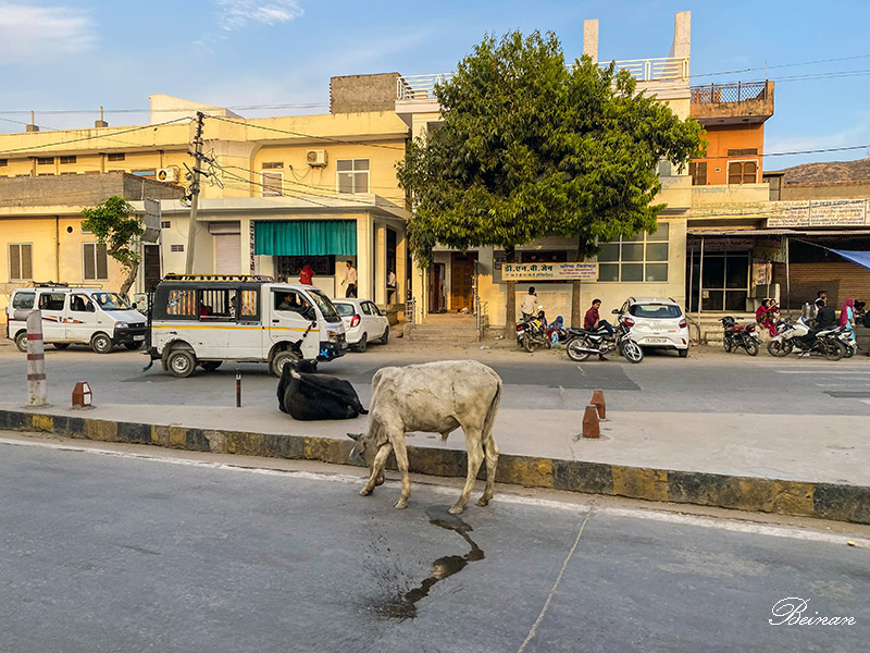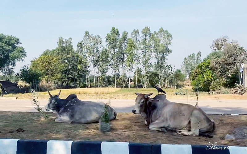 听说是有人清扫,还有人收集,因为牛粪牛尿不仅可以做肥料,在印度的传统疗法中还有药用价值。至于是否会给环境带来影响,我们不知道。因为我们都是在车里看到这些。本着不逛街、不访贫问苦的原则,下车后就生存在舒适的空间里,景点和酒店都非常干净,没有机会看到街上是不是有牛粪。