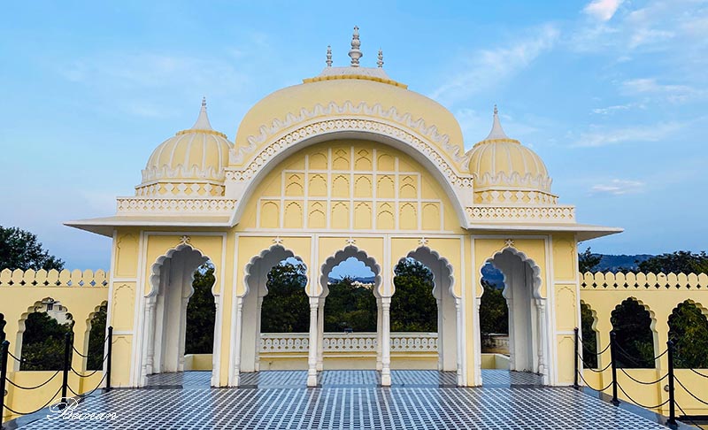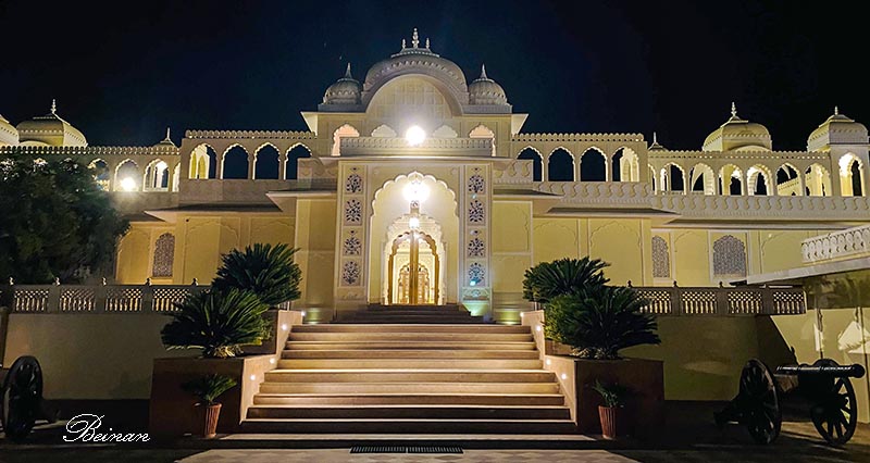 酒店的建筑采用拉贾斯坦建筑中常用的砂岩、大理石和木材等当地材料建造而成。