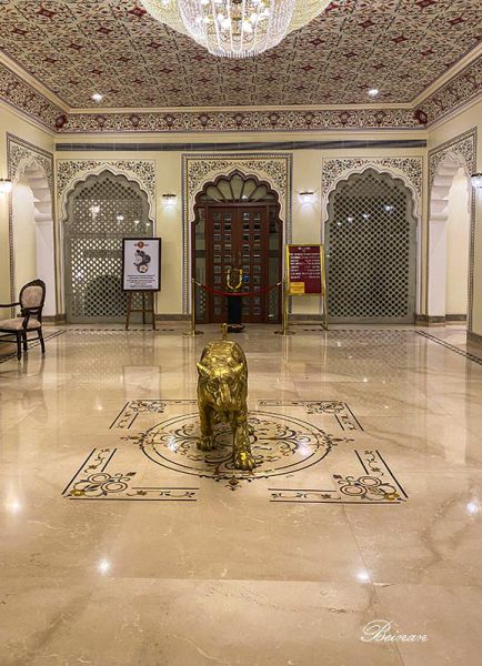 接待大厅的中央有一只镀金老虎。没看到真老虎,看着这金虎也值啦!哈哈!