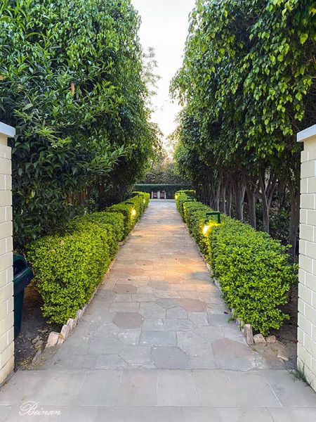 酒店的院子非常大,分为几个大小不同的庭院。每个院子都是花园,里面有修剪整齐的灌木和擎天大树。