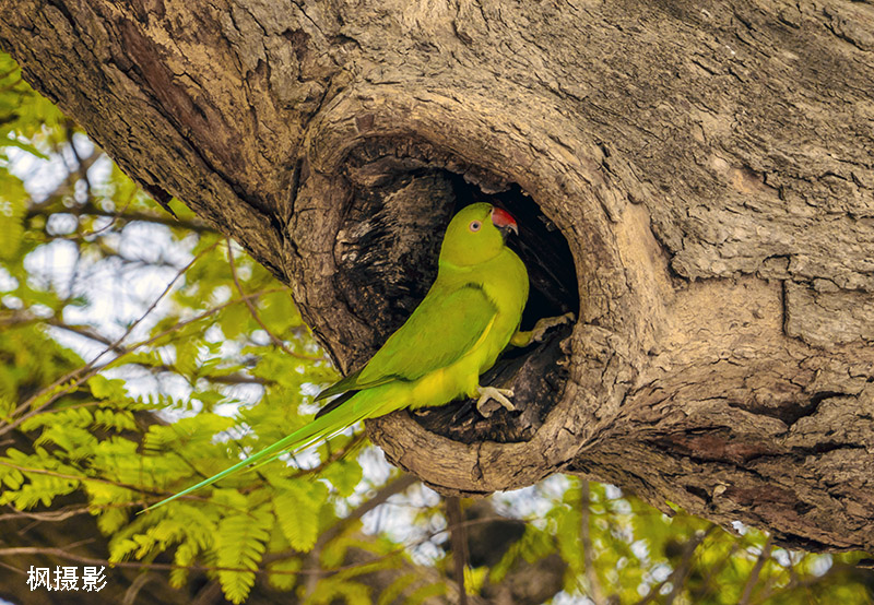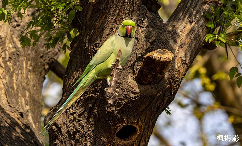 还有漂亮的红领绿鹦鹉(学名:Psittacula krameri;英文:Rose-ringed Parakeet)。