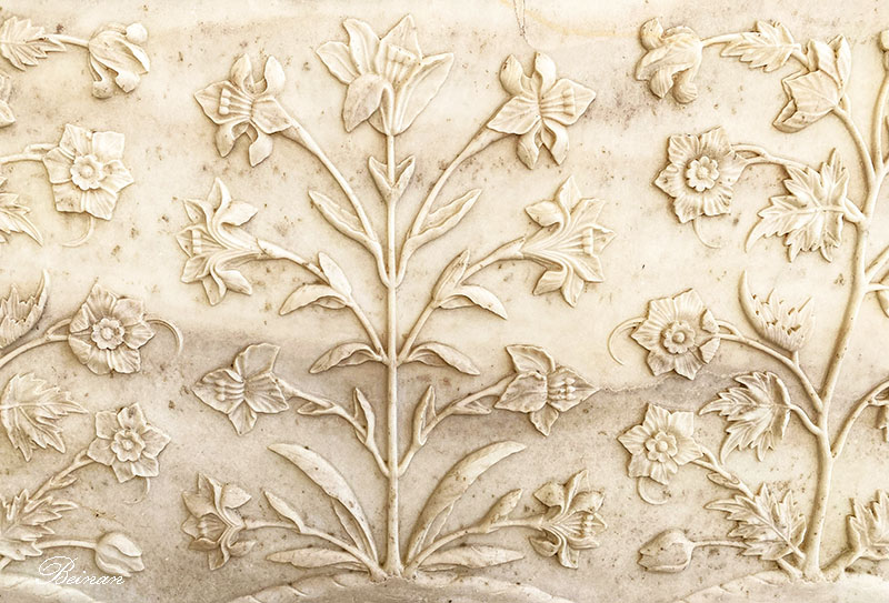白色大理石是泰姬陵主要的建筑材料,另外还有28种半宝石和宝石用来创造美丽的镶嵌和雕塑。