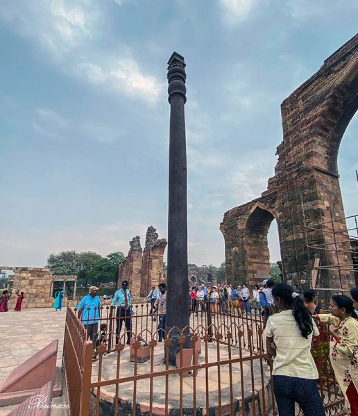 在库图塔的旁边矗立着一个铁柱,周围有铁栏杆围着。导游告诉我们,这是著名的德里铁柱(Iron Pillar of Delhi),也叫阿育王柱(Ashoka Pillar)。