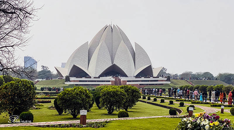 莲花寺是一个伊朗设计师设计的,于1986年建成。以其独特的莲花灵感设计而闻名,是和平、和谐与统一的象征。莲花寺有27个大理石覆盖的花瓣,每三个一组排列成九个面,组合在一起形成莲花的外观。寺庙周围环绕着九个反光池,进一步增强了它的美感。