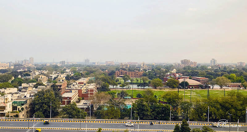 从酒店的窗户,可以俯瞰德里市区。虽然在雾霾下,很少见蓝天白云,但也是绿树茵茵,碧草青青。不像以前认知中的那么不堪入目。