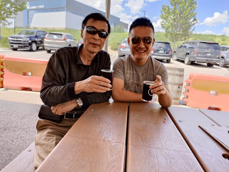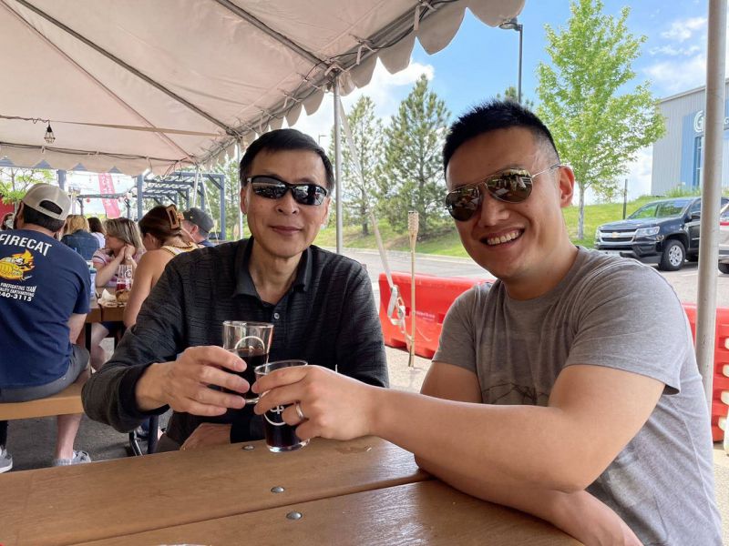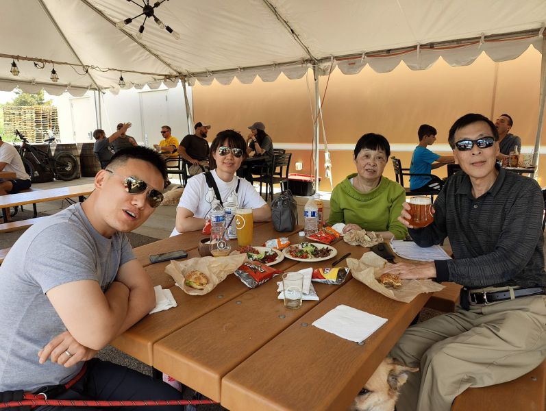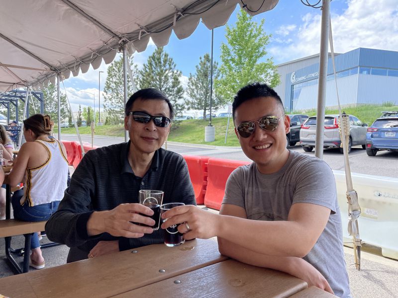 法兰克和小赵已经到了,咱们一起户外就坐。