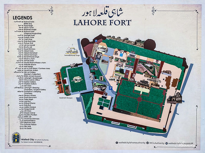 拉合尔堡有着悠久的历史,可以追溯到一千多年前。如今的建筑很大程度上归功于莫卧儿(Mughal)皇帝阿克巴 (Akbar)。他于1566年开始建造,随后历届的莫卧儿皇帝进行了各种增建和翻新。