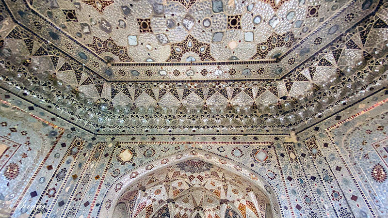 这座宫殿的墙上和天花板上装饰着数千块微小的镜子瓷砖。这些镜子瓷砖是从世界各地进口的,包括伊朗和欧洲。闪闪发光的镜子将光线反射到不同的方向,创造出令人惊叹的效果。