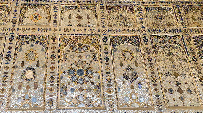 导游不时指给我们看一些建筑的细节。这些门柱上的花纹都是各种宝石镶嵌上去的。导游特意用手机电筒照了一下,这些宝石还发出闪亮的光。想起了我在印度斋浦尔买的大理石宝石镶嵌小象,都是相同的镶嵌工艺。