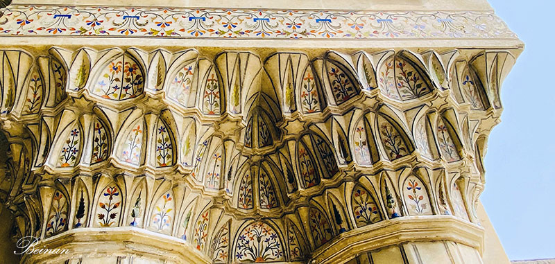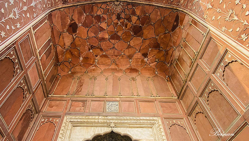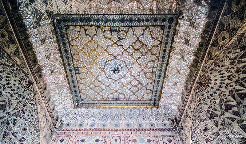 听说这个镜宫是沙贾汗仿照印度斋浦尔(Jaipur)琥珀堡(Amer Fort)的镜宫而建的。我们在琥珀堡也看过镜宫,感觉那里的镜宫比这个镜宫修复保护的要好得多。