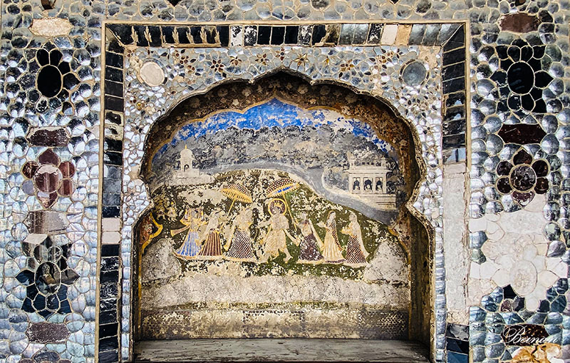 镜宫里还有许多华丽的壁画。可惜都已老旧,颜色剥落。印度人看到这些一定会很不高兴,俺们老祖宗留下的遗产,到你们手里怎么变成这个样子啦?