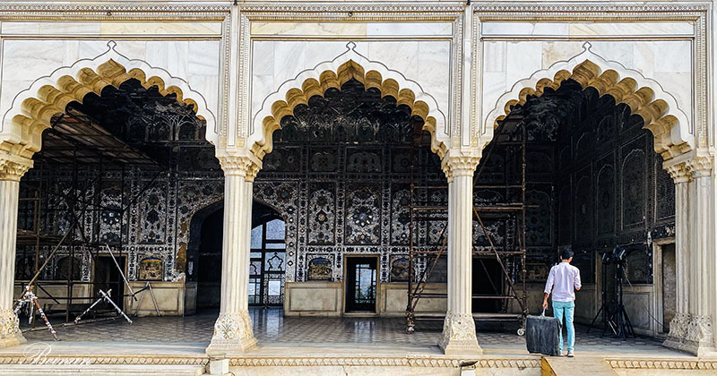 从室内的脚手架看,这里也在修复。希望有一天,漂亮的镜宫能够以原始美丽的尊容展现在世界面前,让这个莫卧儿时代艺术和文化辉煌的结晶重放异彩。