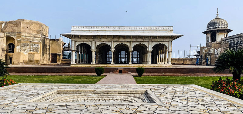 拉合尔堡里最漂亮的建筑是镜宫(Sheesh Mahal)。它是阿克巴大帝的孙子沙贾汗 (Shah Jahan),也就是那位兴建泰姬陵的情种皇帝,在1631-32年间下令建造的。