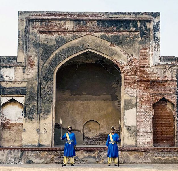 阿拉姆吉里门(Alamgiri Gate)是拉合尔堡的主入口。由莫卧儿皇帝奥朗则布(Aurangzeb)于1674增建。这位皇帝就是那位篡夺皇位,杀死自己的三个亲生兄弟,又囚禁了自己的父亲沙贾汗的残忍的暴君。没想到他也继承了祖上的建筑家的血脉,为拉合尔堡增添了新的因素。