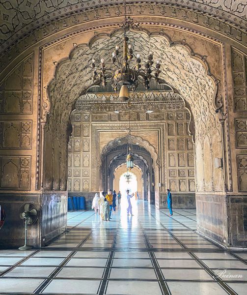 清真寺内的祈祷大厅装饰精美,有拱门、圆顶和吊灯,营造出雄伟而宁静的氛围。巴德沙希清真寺的雕塑被认为是莫卧儿建筑最精美、最独特的作品之一。主房间的两侧是用于宗教教导的房间。清真寺的礼拜堂可容纳一万名信徒。