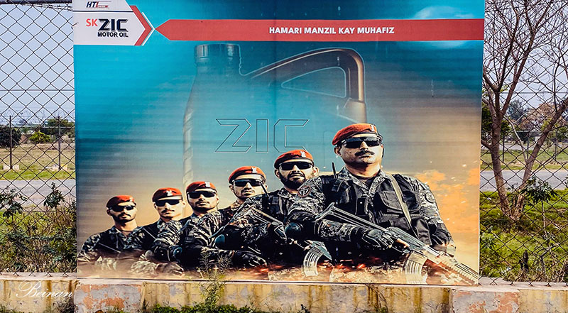 边境路边的大广告牌,上面是帅气的巴基斯坦游骑兵队(Pakistan Rangers)。巴基斯坦游骑兵是巴基斯坦的两支准军事联邦执法部队,有两个军团,一个是旁遮普游骑兵队(Punjab Rangers),总部在拉合尔,就是下面照片上的。另一个是信德游骑兵队(Sindh Rangers),总部在卡拉奇(Karachi)。游骑兵主要的任务是保卫与邻国印度约2,200公里长的边界。