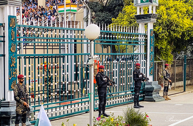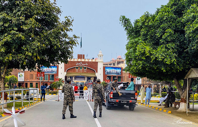 我们过境时穿越的巴基斯坦国门现在有更多士兵把守。