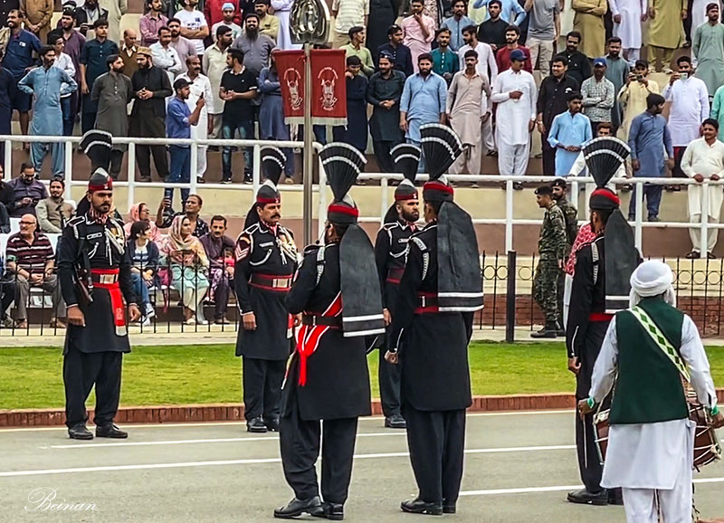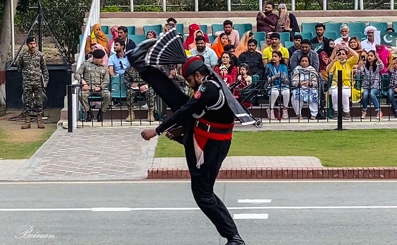 这些旁遮普游骑兵比印度边境安全部队(Border Security Force –BSF)的士兵要高大魁梧,英俊潇洒,个个都有超级明星的颜值。巴基斯坦政府可能是费尽心机精心挑选培训这些表演的游骑兵,用以弥补观众不足的弱点吧。