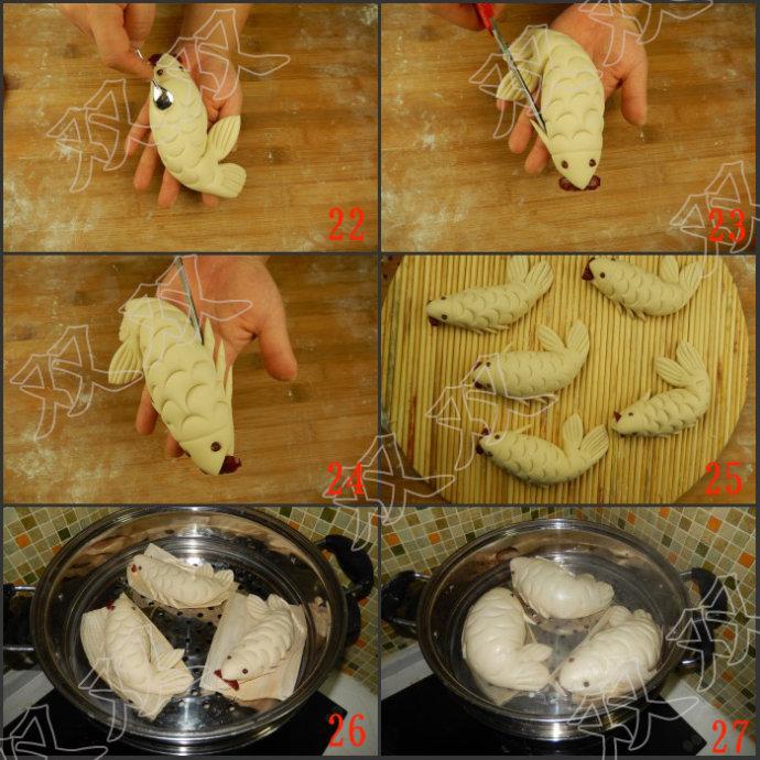 2、鱼鳞是用小勺子压上去的,压的时候要略用力,不然发酵后不明显。