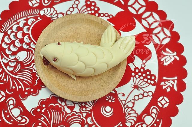 图21:点缀红豆,做鱼眼睛。(用比红豆粗的吸管,在眼睛位置略压下,眼睛会更漂亮哦!没有可省略)