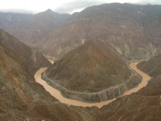 金沙江大拐弯,也称金沙江第一湾,位于川滇藏三省区结合部的得荣县子庚乡境内。由北向南纵贯全境的定曲河,在先后接纳了玛伊河和硕曲河之后,携三江之水投入了金沙江的怀抱,在江水汇合处,形成“三壁夹两江”的奇景。(百度百科)