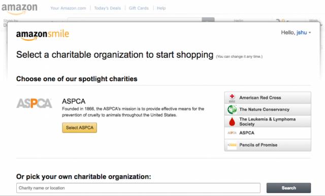 AmazonSmile 是一个非常好的平台。用户在此购买商品, 花费的0.5%,Amazon 将 match 捐给自己心仪的非营利组织*。