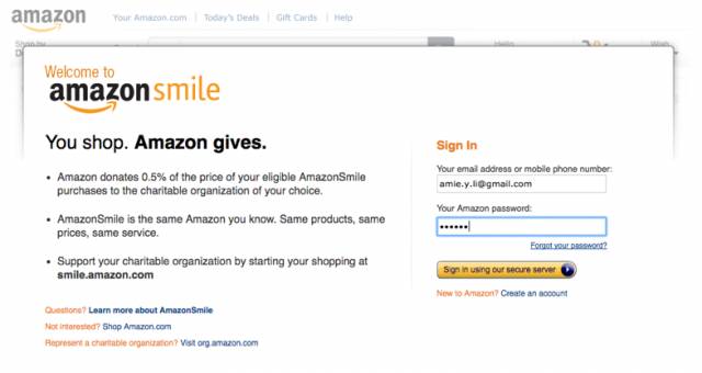 1. 点击链接: https://smile.amazon.com。如果你从来没有在 Amazon 用自己的账号购物的话,先注册。有账号就登陆。